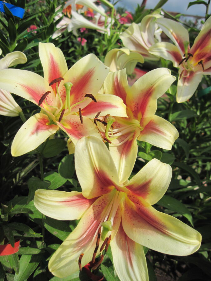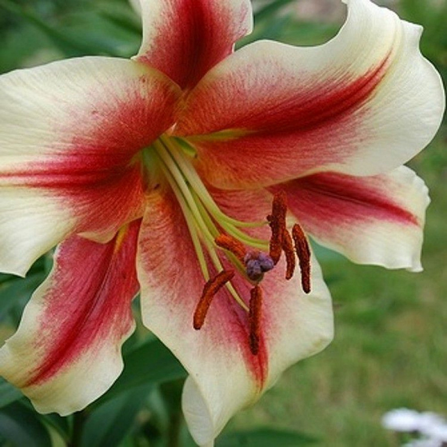 Лилия от-гибрид загора - это великолепное растение с кремовыми цветками и красным пятном в центре, которое поражает своей изысканной красотой. Высота этого растения может достигать до 110 см, что делает его прекрасным украшением для вашего сада или огорода. Лилия от-гибрид загора имеет зеленые листья и крупные цветки размером от 18 до 30 см, что придает ей особый шарм и изысканность.