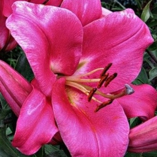 Саженцы и рассада Лилии восточной Арабиан Ред (Lilium oriental Arabian Red) принесут на клумбы яркость и сочность. Темно-красные крупные цветы с белым горлышком и крапчатыми лепестками, диаметром до 20 см, обладают сильным ароматом и привлекательной для насекомых окраской. Высота растения до 110 см, длина листьев до 25 см. Период цветения начинается июле, привлекательный декоративный вид и зелень сохраняется до глубокой осени, на зиму хорошо укрываются. При посадке требуют теплого светлого или полутеневого места с хорошо дренированной почвой. Пригодны для выращивания в помещениях, в цветочных горшках, в открытом грунте и теплицах.