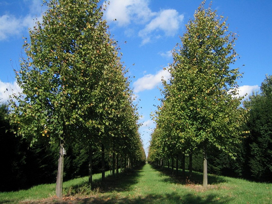 Саженцы липы сердцелистной Гринспайер (Greenspire) не требуют особых усилий при посадке и довольно быстро вырастают стройные деревья с тенистыми кронами. Высота взрослого растения 15-20 м, в зависимости от условий высадки. Форма кроны молодого крупномера напоминает пирамиду, с возрастом разрастается в ширину. Листья зеленые, сердцевидные. В июле дерево покрывается душистыми желтыми цветами. Плодоносит круглыми орешками. Липа сердцелистная Гринспайер является ценным медоносом.
