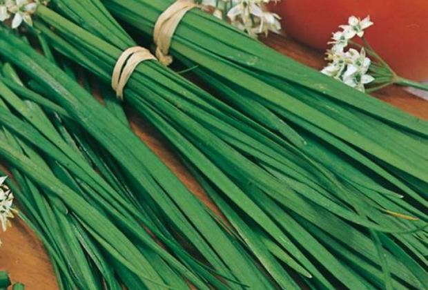 - хорошая урожайность. Листья лука душистого Звездочет узкие, длинные, зеленые, с незначительным восковым налетом. Вкус – слабочесночный с пикантной горчинкой, не острый. Обладают приятным ароматом. Листья содержат большие количество эфирных масел. В пищу употребляют как листья (в свежем, сушёном и соленом виде), так и цветки (богаты витамином С). Начинают срезку листьев, выращенных из семян лука душистого Звездочет, на следующий сезон после посадки.