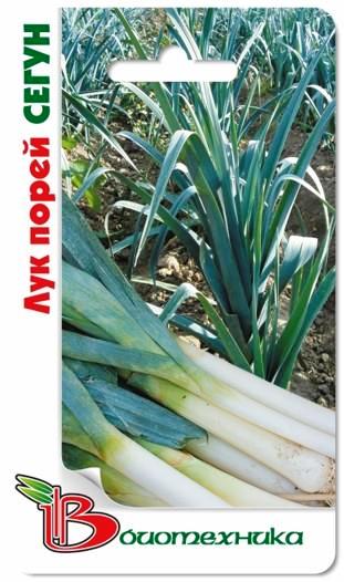 Семена лука "Сегун" (Segun) – это среднепоздний сорт. Чтобы собирать на протяжении всего лета богатый урожай зеленных листочков, посев производят на плодородные участки. Уход заключается в регулярном поливе и внесении время от времени подкормок. Высота листьев достигает до 25 см. Перья сине-зеленого цвета без антоциана, присутствует восковый налет. Диаметр "отбеленной ноги" составляет около 5 см. Средняя масса одного кустика доходит до 250 грамм. Сорт универсален в использовании, морозостойкий, пригоден для продолжительного хранения.