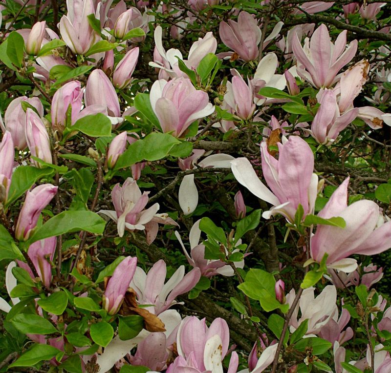 Саженцы магнолии гибридной Джордж Генри Керн (George Henry Kern) вырастают в раскидистые листопадные кустарники или деревья с большим ветвлением. Очень красиво и обильно цветут крупными чашевидными цветками, лиловыми снаружи и бело-розовыми лепестками изнутри. Растение зацветает в апреле-мае, немного раньше появления жестких, глянцевых листьев. Высота крупномеров в возрасте достигает 3м. Крона магнолии гибридной Джордж Генри Керн с годами приобретает округлую форму.