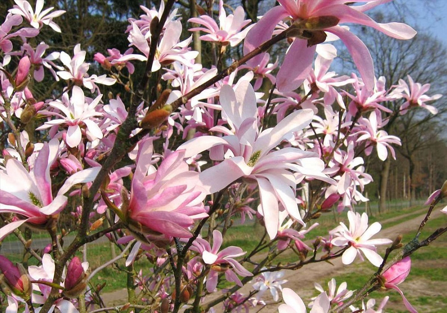 Саженцы магнолии Лебнера Леонард Мессел (Leonard Messel) вырастают в живописный многоствольный кустарник, усеянный бело-розовыми цветами. Вырастает крупномер до 5-6 м в высоту, может разрастаться в ширину и размножаться черенками. Магнолия Лебнера Леонард Мессел – гибридный сорт средней морозостойкости. Цветы имеют форму звезд, цвет их варьируется от белого внутри чаши до темно-розовых лепестков. Цветение: апрель - май.