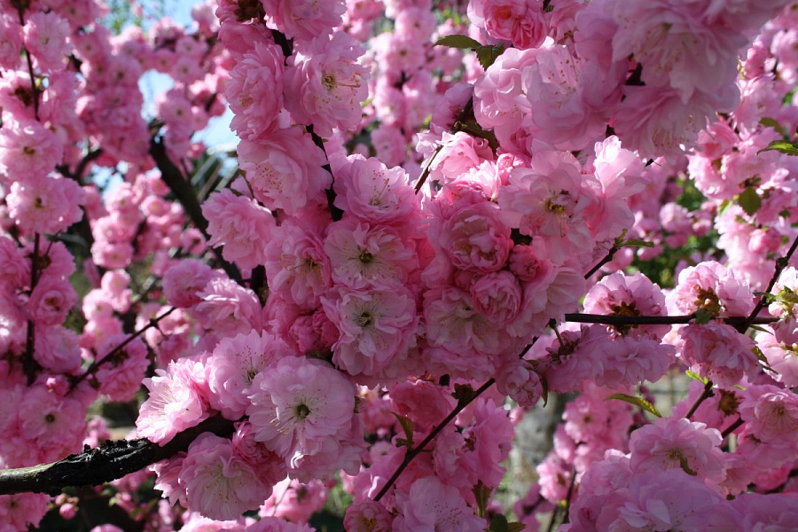 • устойчивость к вредителям и болезням. Во время цветения крупномеру нужен обильный полив для наиболее долгого (до 35 дней) цветения. Наиболее подходят для посадки солнечные участки. Миндаль Prunus triloba) - отличное украшение для разного рода ландшафтов.