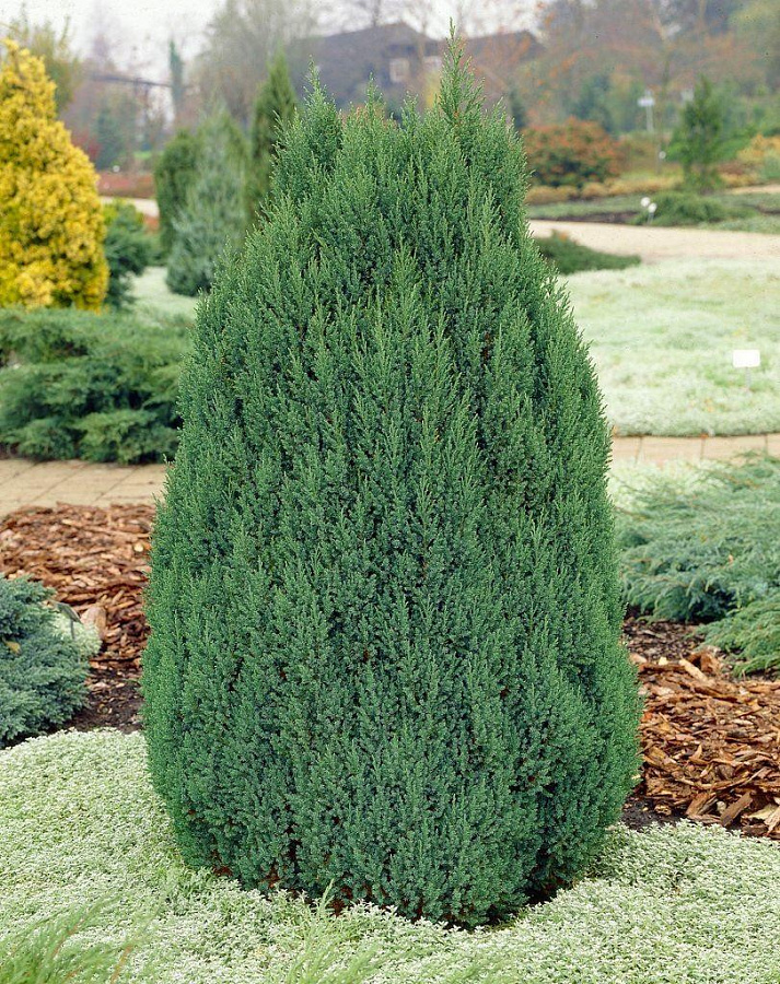 Саженцы можжевельника китайского Стрикта (Stricta) растут достаточно медленно. Характеризуется необычной формой кроны, напоминающей конус. Хвоя голубого цвета, достаточно жесткая. Рекомендуется выращивать на солнце, однако способны расти и в полутеневых участках сада. Неприхотливы к условиям, хорошо переносят зимы, любят влагу. Зимой оттенок хвои становится более голубым, к лету – светлеет.