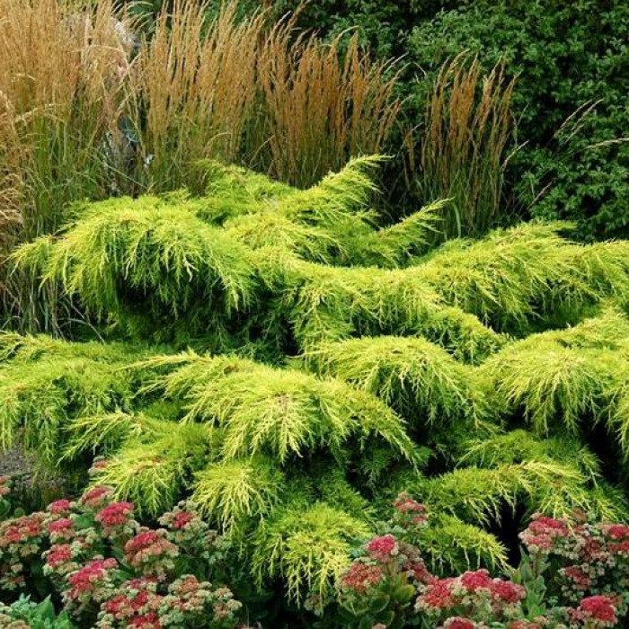 Саженцы можжевельника среднего Голд Стар (Gold Star) имеют красивую желто-золотистую хвою, определившую название вида – «Золотая Звезда», которая не колется. Как многие можжевельники, сорт Голд Стар выделяет фитонциды и очищает окружающий воздух от бактерий.