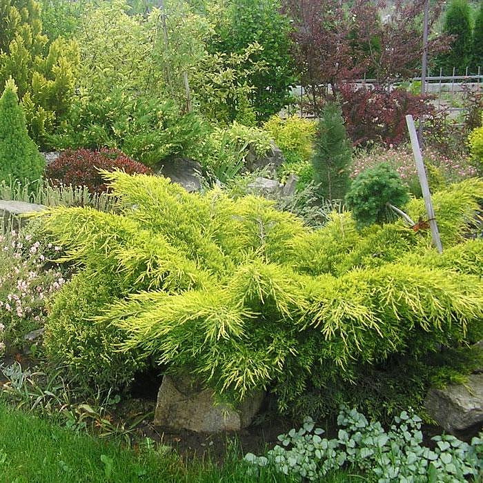 Саженцы можжевельника среднего Пфитцериана (Pfitzeriana) – этот нетребовательный сорт одинаково хорошо произрастает в почвах любого качества. Предпочитает солнечные места. Засухо- и морозостоек, хорошо акклиматизирован, учитывая, что родиной произрастания Пфитцериана является Северная Америка.