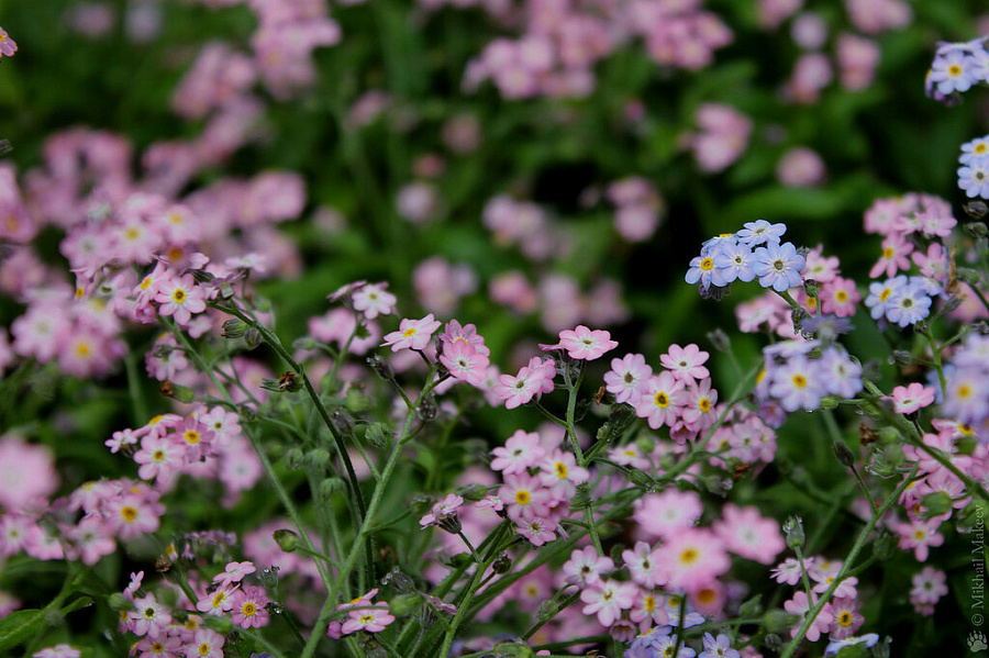 Семена незабудки садовой отлично приживаются, как на солнечных, так и на тенистых участках. Это растение будет радовать садоводов цветением, во время которого на ветвях появляются нежные розовые соцветия. Данный экземпляр можно размещать где угодно: