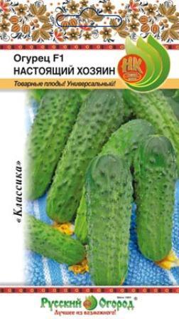 Семена огурцов "Настоящий Хозяин" принадлежат к партенокарпическому высокоурожайному гибриду. Сбор плодов осуществляется к достаточно короткие после появления всходов сроки. Зеленцы формируются очень красивые, темно-зеленого окраса. Плоды часто и крупно бугорчатые. Длина обычно не бывает меньше и больше 8 см. Средняя масса около 60 грамм. Сорт отличается высокой товарностью урожая. Ценятся семена огурцов "Настоящий Хозяин" среди огородников за устойчивость к основным заболеваниям огурца.