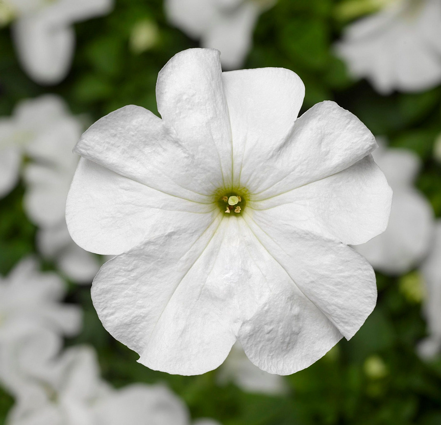 Петуния грандифлора дувет вайт - это изысканное растение с белоснежными цветками, которые напоминают пушистое облачко. Ее стебель прочный и устойчивый, достигает высоты от 15 до 25 см, что делает ее идеальным выбором для создания красивых цветочных композиций в саду или на балконе. Листья петунии грандифлора дувет вайт имеют овальную форму, создавая гармоничный контраст с нежными цветками.