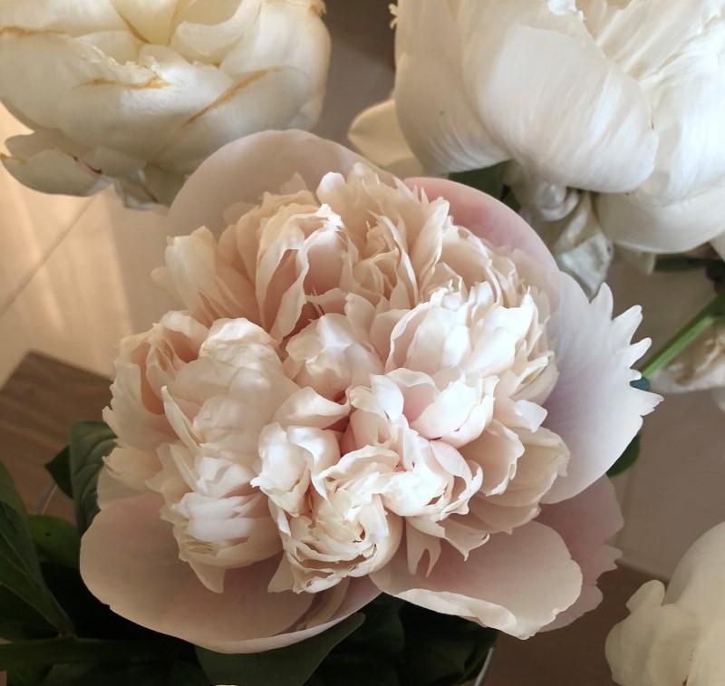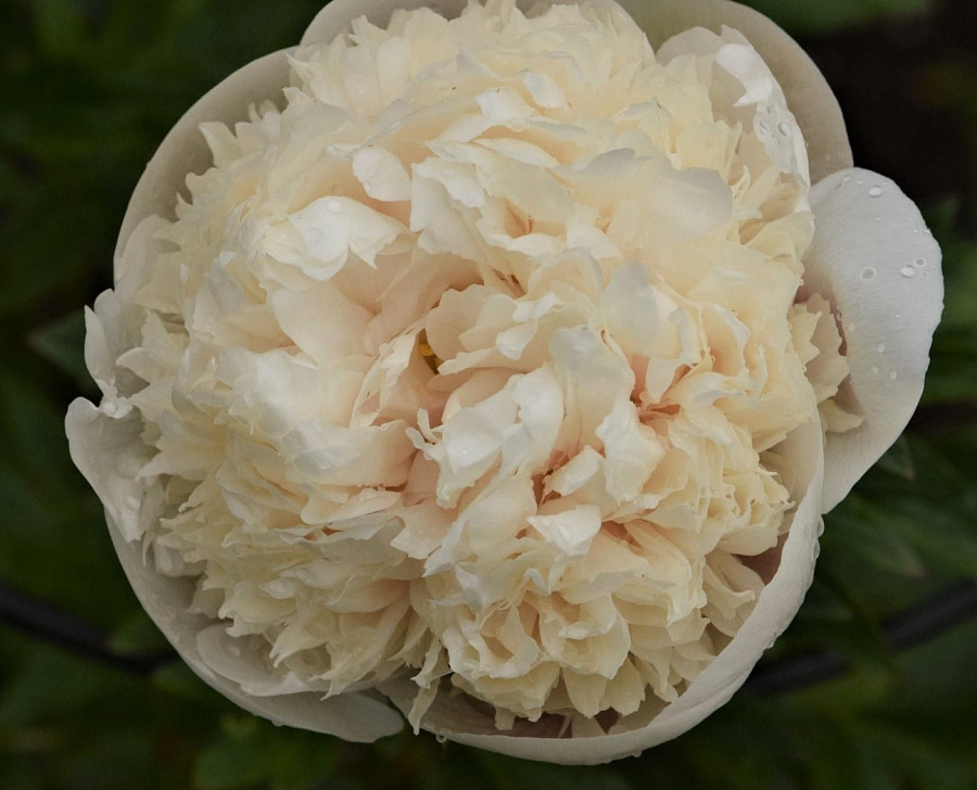 Саженцы пиона Colonel Owen Cousins (Колонел Оуэн Касинс) Этот удивительный пион с крупными махровыми цветами в форме бомбы, шар из внутренних лепестков цвета слоновой кости обрамлен рядом крупных белых лепестков с лососево-розовым оттенком. Характерные особенности растения: