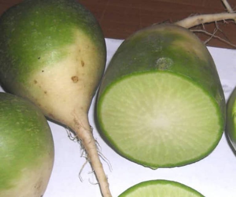 Семена редьки «Маргеланская» высевают в первой половине июля. Посев производят во влажную землю либо во время дождя. Рассада редьки «Маргеланская» быстро прорастает и не требует ухода. Урожай можно собирать чрез два месяца после появления всходов. Масса корнеплодов достигает 400 г. Они имеют овальную форму и окрашены в зеленоватый оттенок. Мякоть обладает нежно-острым вкусом, сочная. Окрашена она в светло-зеленый цвет. Сорт семян редьки «Маргеланская» хорошо хранятся, при этом не теряют свои вкусовые и товарные качества. Также корнеплоды обладают всеми лечебными свойствами зимней редьки.