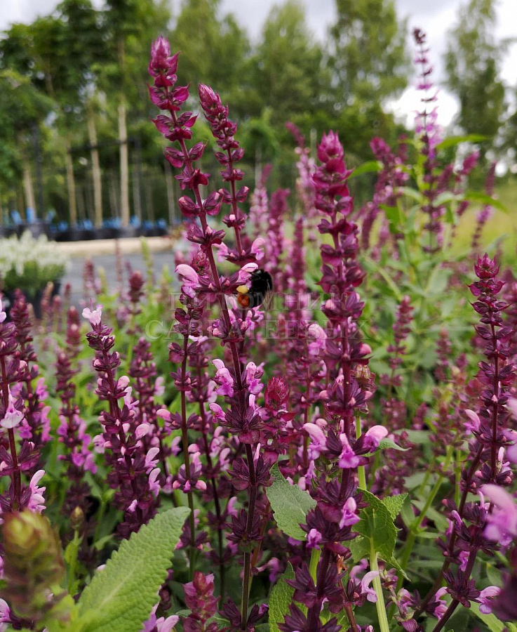 Рассада шалфея дубравного Роуз Квин (Rose Queen) прекрасно играет роль фона для любых сортов роз благодаря мелким розово-сиреневым сидячим цветам, собранным во внушительные свечи колосовидных соцветий длиной 30-40 см. Рост самого растения достигает 60 см. Прямые ветвящиеся стебли и крупные слегка опушенные листья дают рассаде прелестный сизый оттенок до и после цветения.