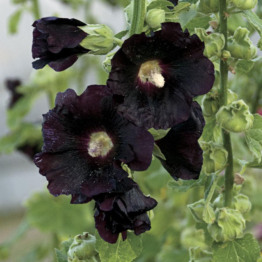 Шток-роза черная - это удивительное растение с шоколадно-коричневыми цветками, которые привлекают взгляд своей необычной окраской. Ее ствол прочный и прямой, достигает высоты до 150-160 см, что делает ее идеальным украшением для вашего сада или огорода. Листья этого растения имеют элегантную форму и придают ему особый шарм.