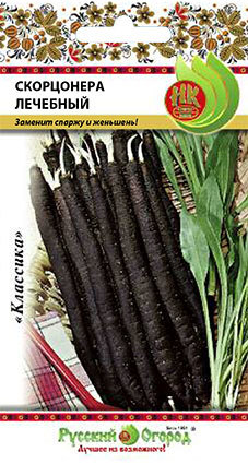 Семена скорцонеры "Лечебный" принадлежат к растению, которое является отличным диабетическим продуктом. Используют в еду корнеплоды. Их добавляют в салаты, а также варят и тушат. Высевают семена скорцонеры "Лечебный" прямо в грунт в аперле — мае. Сбор урожая производят через 100-120 дней после появления всходов. Корнеплоды достаточно длинные, до 35 см, имеют темную, практически черную окраску. Мякоть при этом белоснежная, очень сочная, с приятным сладковатым вкусом, который напоминает спаржу и земляной орех.