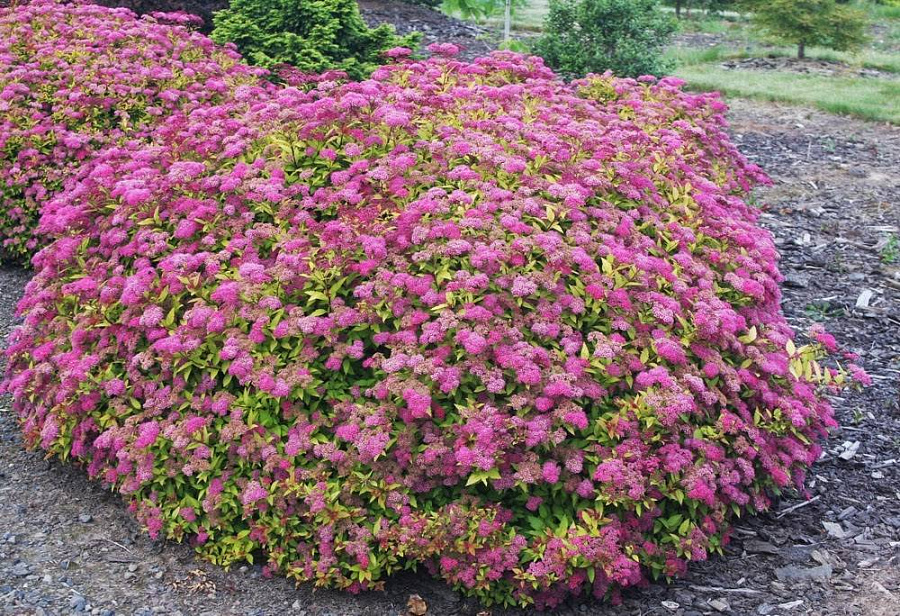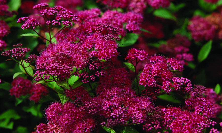 Саженцы японской спиреи Антони Ватерер (Anthony Waterer) порадуют садоводов яркими соцветиями, которые контрастно выделяются на фоне темной сочной листвы. Этот пышный кустарник отлично сочетается с более высокими растениями и гармонично впишется в группу себе подобных представителей флоры.
