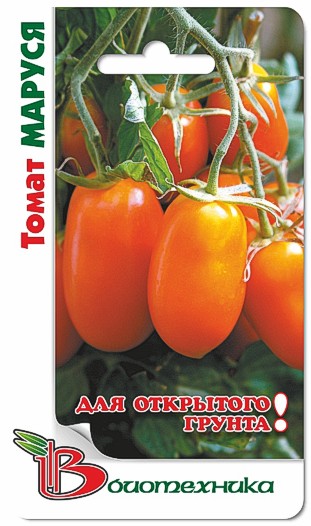 Семена томата "Маруся" (Marusia) – раннеспелый высокоурожайный сорт, предназначен для выращивания в открытом грунте и пленочных теплицах. Предпочитает расти на богатых органическими веществами почвах. Куст высотой 60-80 см, сильно облиственный. Урожайность 6,5-7,5 кг с 1 кв. м. Вегетационный период 105-110 дней. Плоды интенсивно-красного цвета, овально-сливовидные, плотные, с прочной кожицей, не растрескиваются на кусте. Сорт обладает высокой устойчивостью к вертициллезу и фузариозному увяданию. Урожай идеален для цельного консервирования, переработки, а также для потребления в свежем виде.
