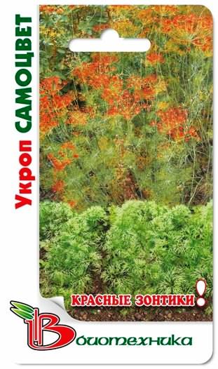 Семена укропа "Самоцвет" (Samotcvet) сеют под зиму или ранней весной. Для богатых урожаев применяют многократные весенне-летние посевы с интервалом 10-12 дней. Главные достоинства сорта: ароматичность, высокая урожайность, декоративность. Период от полных всходов до уборки на зелень составляет 35-40 дней и на специи – 60-76 дней. Сорт нормально переносит понижение температуры до слабых заморозков. Розетка листьев приподнятая. Лист среднего размера, без воскового налета сохраняет изумрудно-зеленый цвет на протяжении всего периода вегетации. Масса одного растения при уборке на зелень 15-20 грамм.