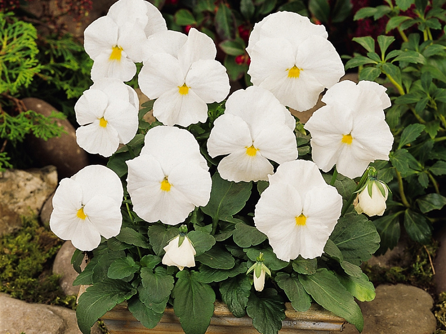 Виола крупноцветковая дельта пьюр вайт - это изысканное растение с белоснежными цветками, которые радуют глаз своей красотой. Ее стебель достигает высоты 10-15 см, а размер цветка составляет 8-10 см. Листья этой виолы имеют форму сердца и создают уютный зеленый ковер в вашем саду.