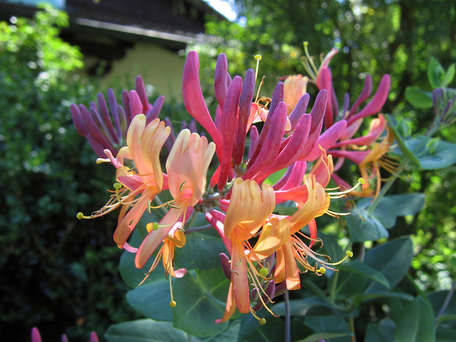Саженцы жимолости гекротты (Lonicera ?heckrottii) имеют темно-зеленую, яйцевидную листву, которая располагается супротивно друг дружке. Кустик пышный, хорошо вьется. Цветочки нежные, обильно покрывают стебли и собраны в пучки. Достоинства жимолости гекротты: